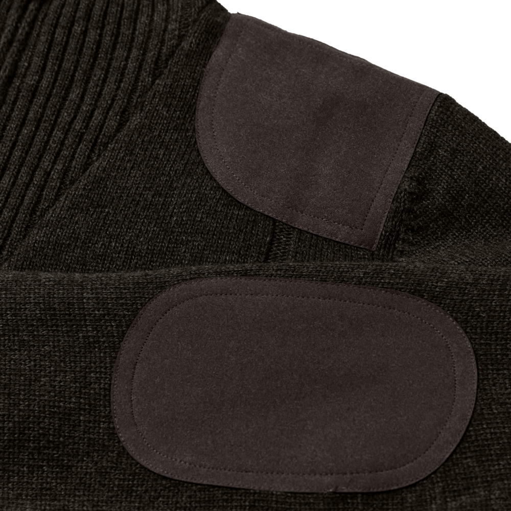 Imitatie suède op de schouders en ellebogen.